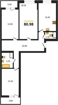 1, 2, 3 комнаты от 39.91 до 95.25 м2 от 22,5 до 51,4 млн. руб